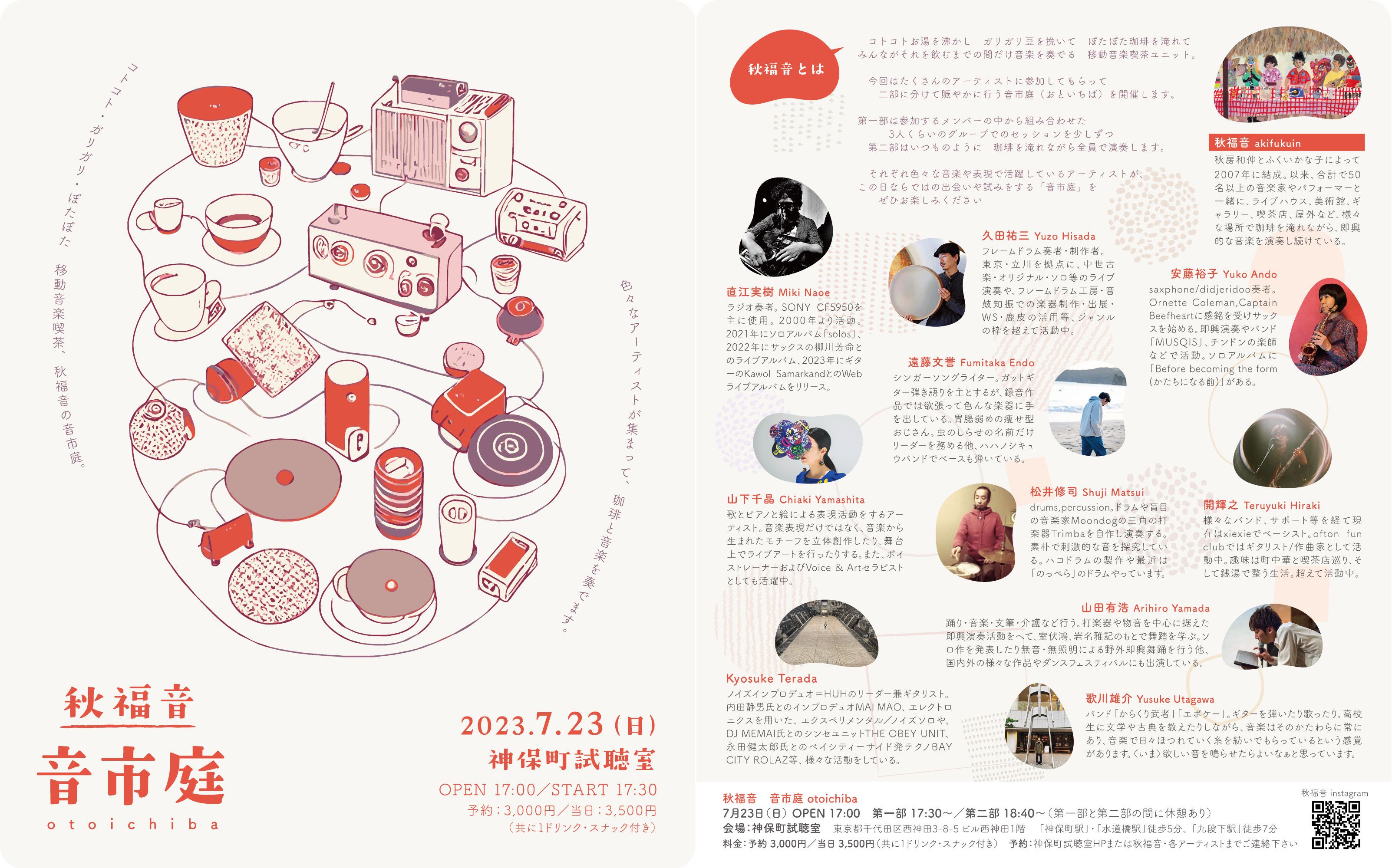 それぞれの音楽や表現で活躍するアーティストの、この日ならではの出会いや試みをする「音市庭」(おといちば)をぜひお楽しみください。