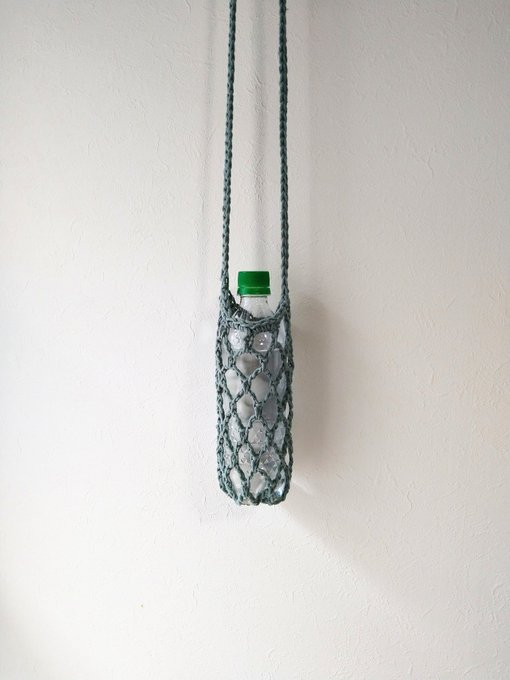 今回はペットボトルやスマホが入る、肩にかけれるネットのポシェットをつくります~。(写真参考/大体1~2時間でできます)
