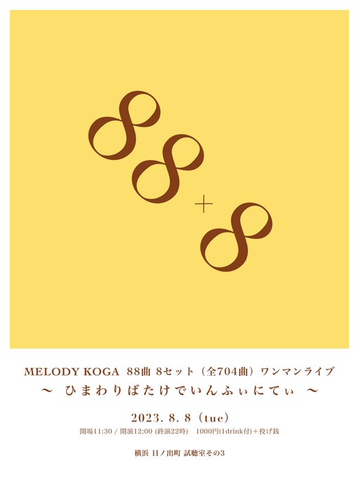 Warning: Use of undefined constant moretag_custom - assumed 'moretag_custom' (this will throw an Error in a future version of PHP) in /home/mtrw22/mwx.jp/public_html/shicho.mwx.jp/wp/wp-content/themes/shichoshitsu2013/functions.php on line 341 試聴室 » 「MELODY KOGA 88曲 8セット (全704曲) ワンマンライブ ~ひまわりばたけでいんふぃにてぃ~」