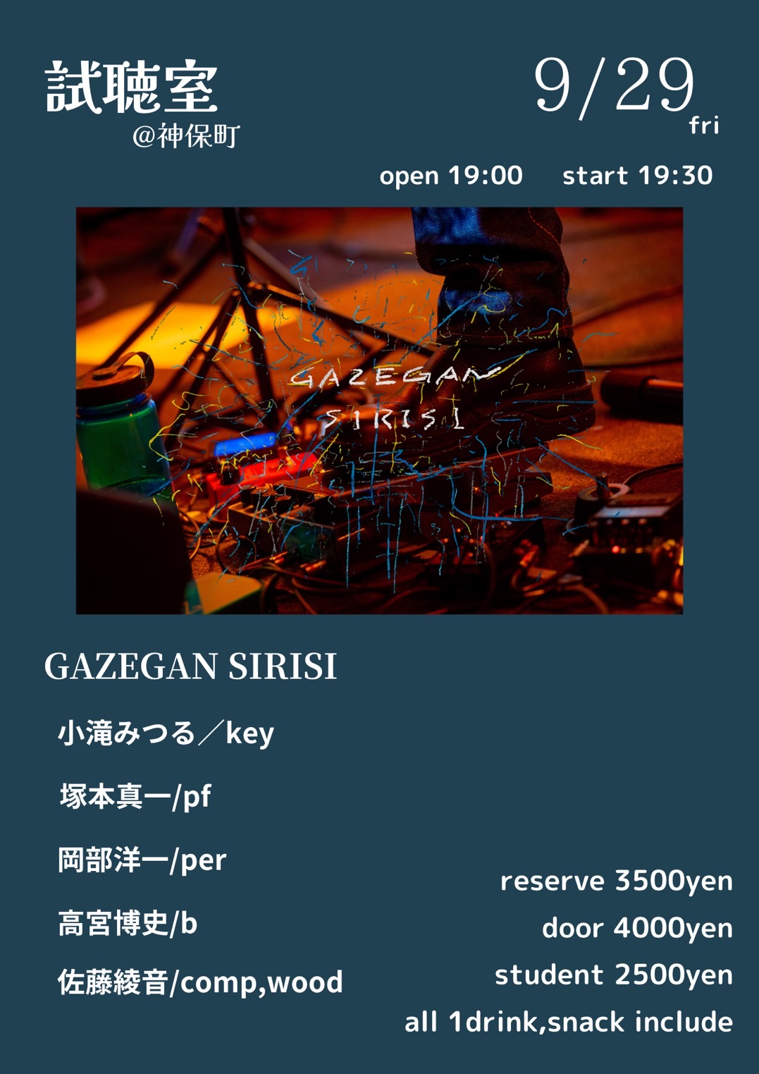 ■料金:予約 3,500円 / 当日 4,000円 (ともに1ドリンク, スナック込)