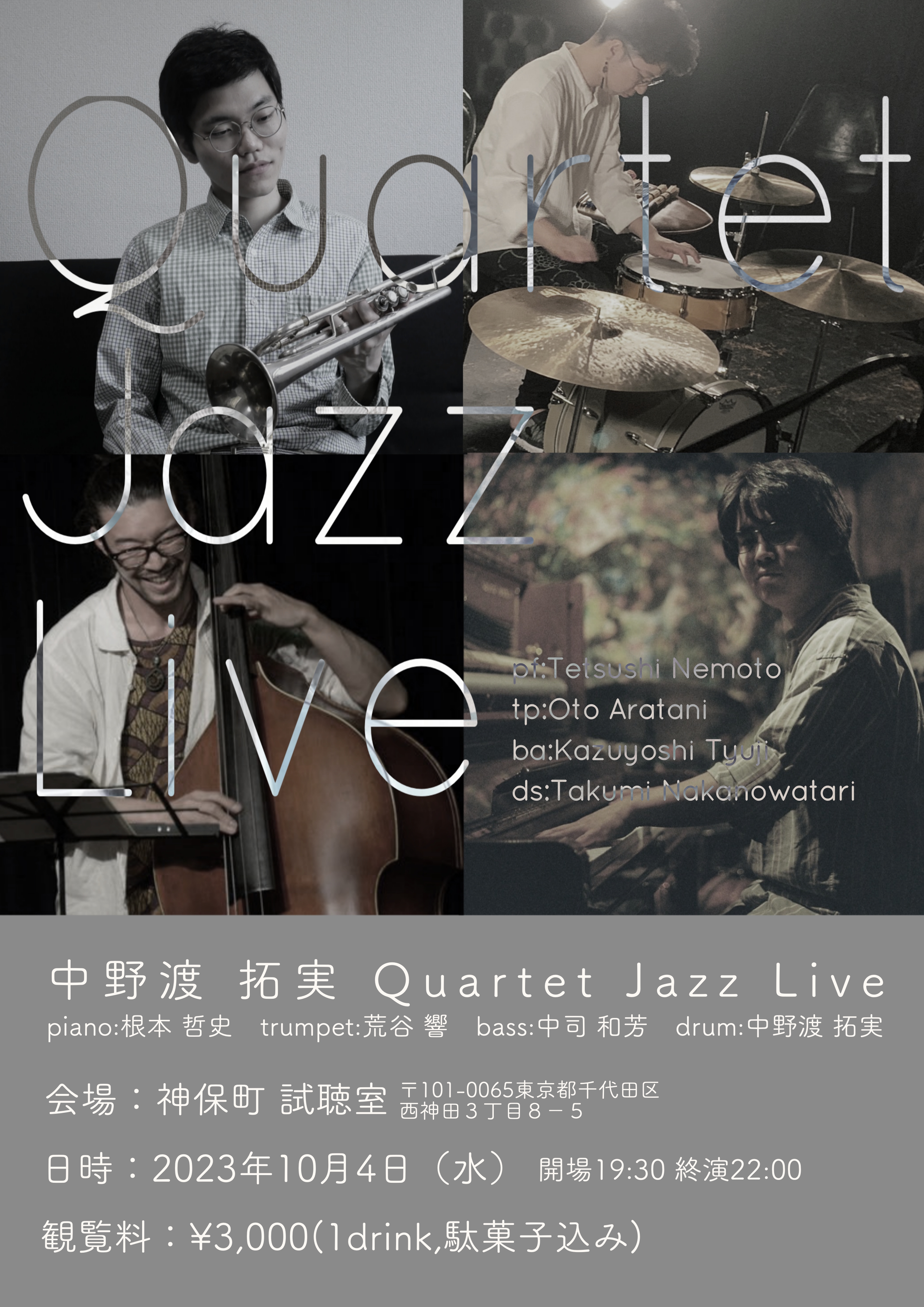 Warning: Use of undefined constant moretag_custom - assumed 'moretag_custom' (this will throw an Error in a future version of PHP) in /home/mtrw22/mwx.jp/public_html/shicho.mwx.jp/wp/wp-content/themes/shichoshitsu2013/functions.php on line 341 試聴室 » 根本哲史 (pf)、荒谷響 (tp)、中司和芳 (b)、中野渡拓実 (ds)