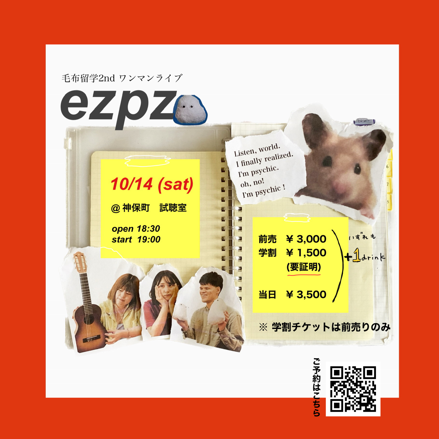 ■料金:予約 3,000円 / 当日 3,500円 ともに+1ドリンク(500円)