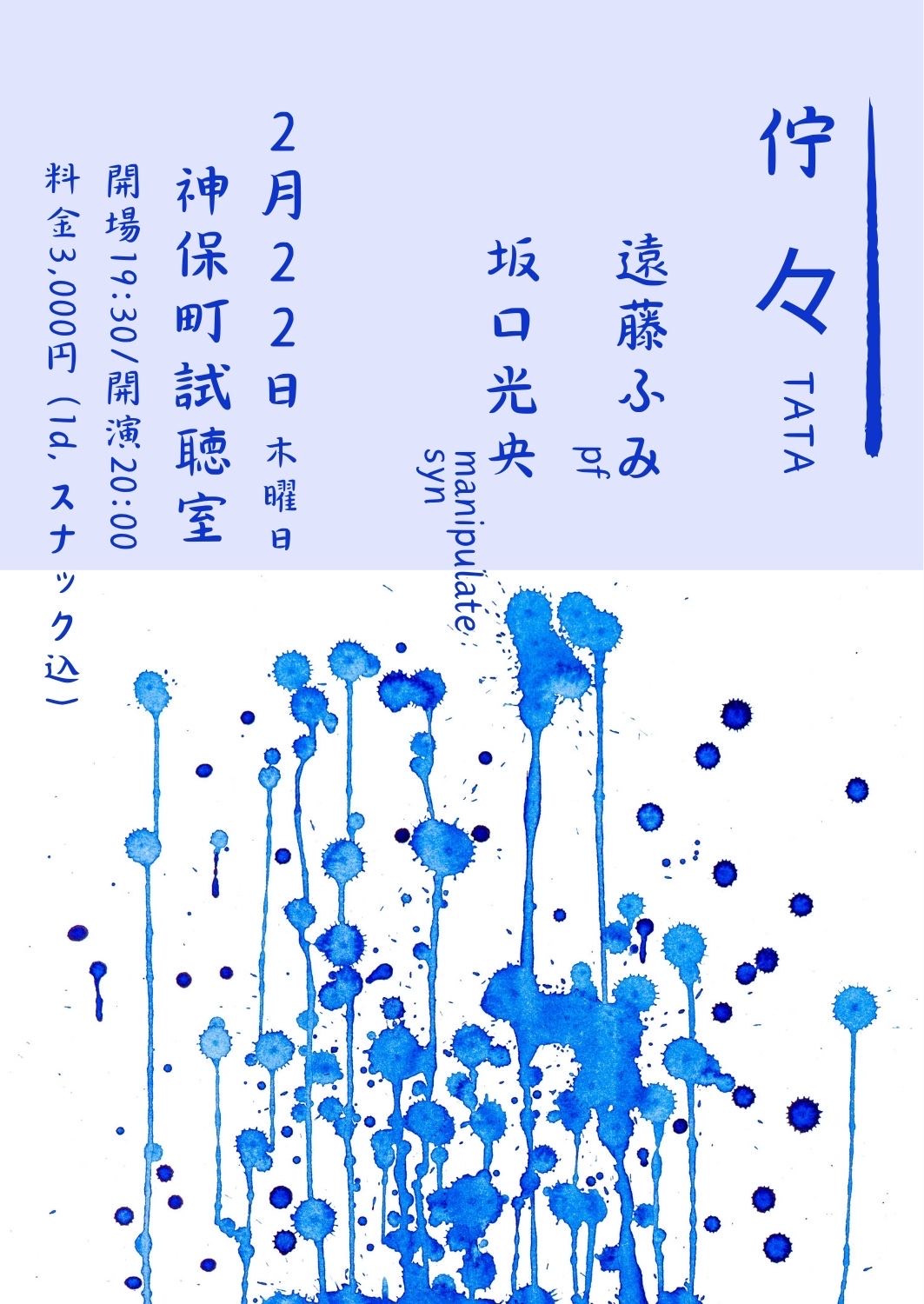 Warning: Use of undefined constant moretag_custom - assumed 'moretag_custom' (this will throw an Error in a future version of PHP) in /home/mtrw22/mwx.jp/public_html/shicho.mwx.jp/wp/wp-content/themes/shichoshitsu2013/functions.php on line 341 試聴室 » 『佇々』 遠藤ふみ(pf)、坂口光央(manipulate, syn)