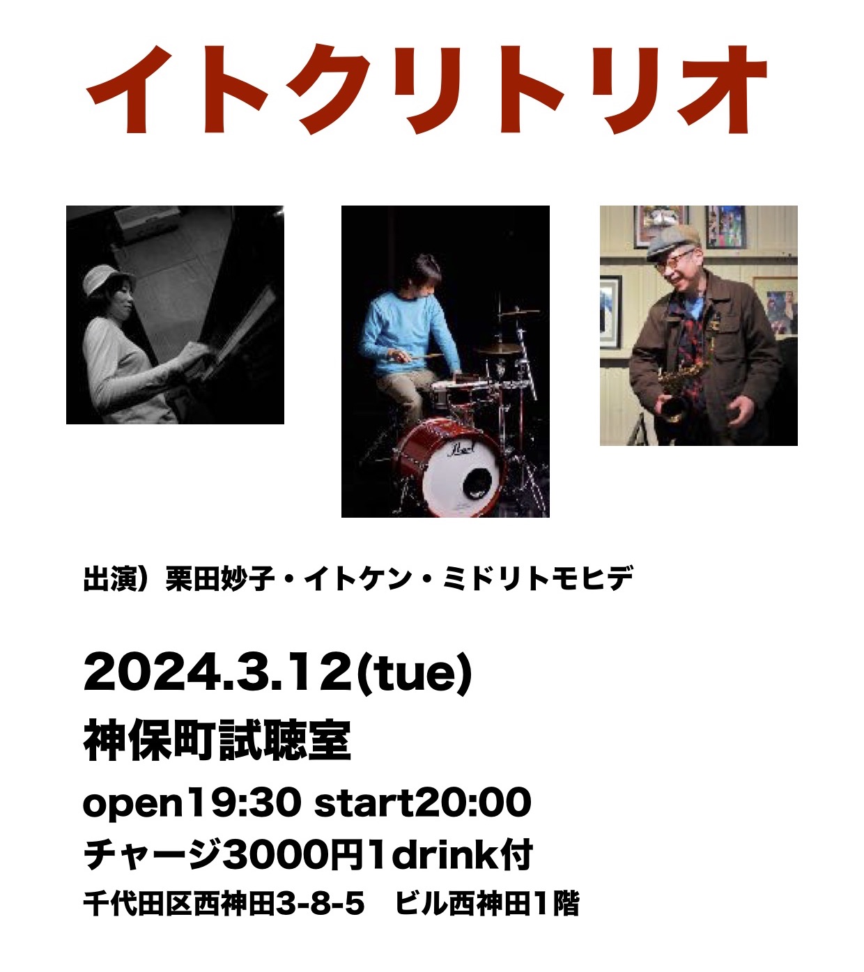 試聴室 » イトクリトリオ【ミドリトモヒデ (sax&effect)、栗田妙子 (piano)、イトケン (drums)】